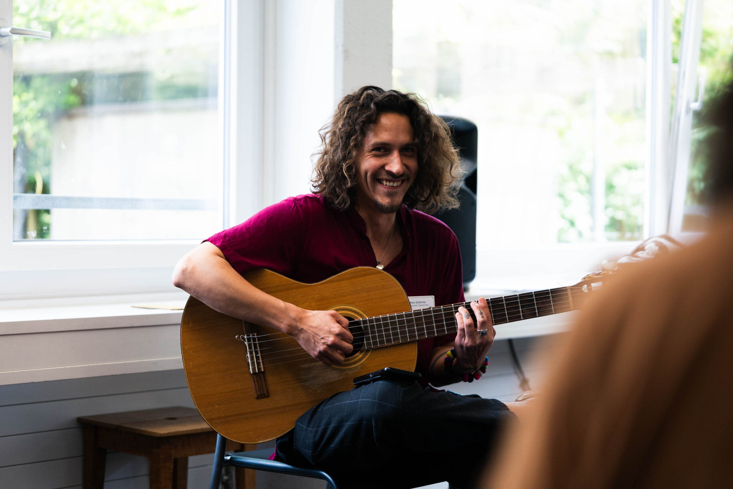 In Begleitung einer Fachperson wird gemeinsam in der Gruppe musiziert und gesungen.